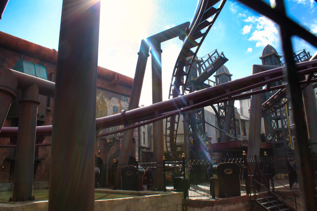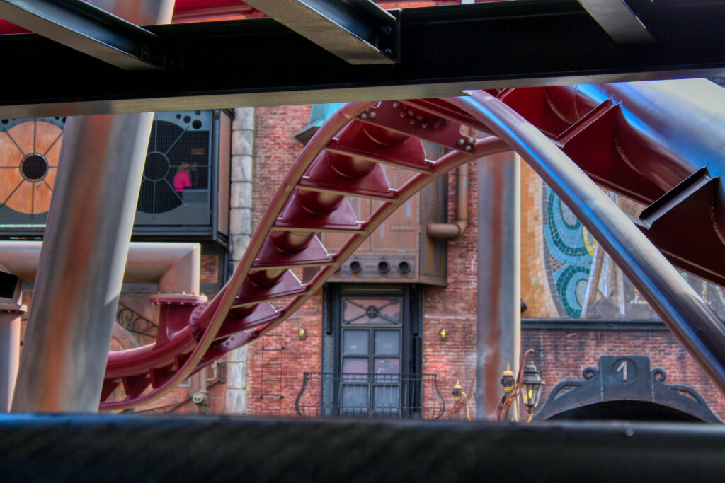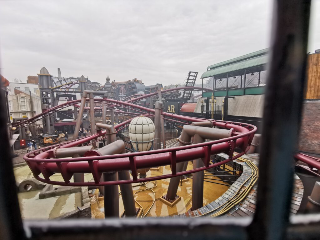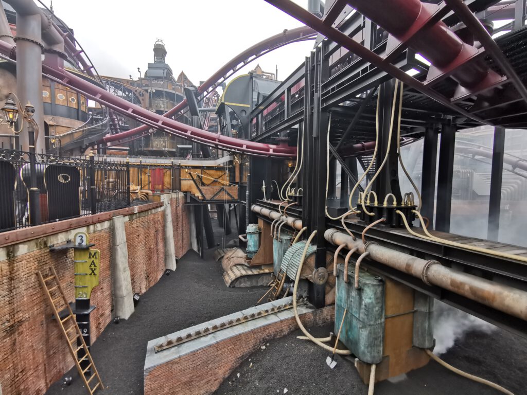 Gehen wir kurz auf die Themenwelt noch einmal ein. Ich war sprachlos als ich in Rookburgh war. Etwas überfordert trifft zu. Überall ist F.L.Y zu sehen und in jeder kleinen Ecke ist es Thematisiert, selbst die Toiletten. Es ist einfach beeindruckend wie F.L.Y durch den ganzen Themenbereich fliegt. Selbst die Effekte der Achterbahn bekommt man von außen mit. Die Themenwelt ist vielleicht klein aber fein. So überwältigend. Ich bin eindeutig gehypt. Ich glaube Bilder sagen mehr als Worte.